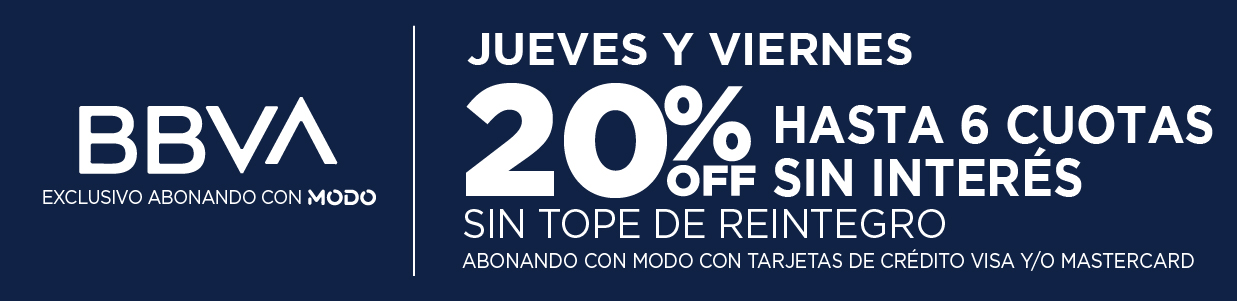 Podrás abonar con Mobbex para acceder a tu promoción bancaria, por MercadoPago con 3, 6, 9 y 12 cuotas sin interés (según montos mÃnimos establecidos) y por GoCuotas en 2, 3 y hasta en 4 cuotas.